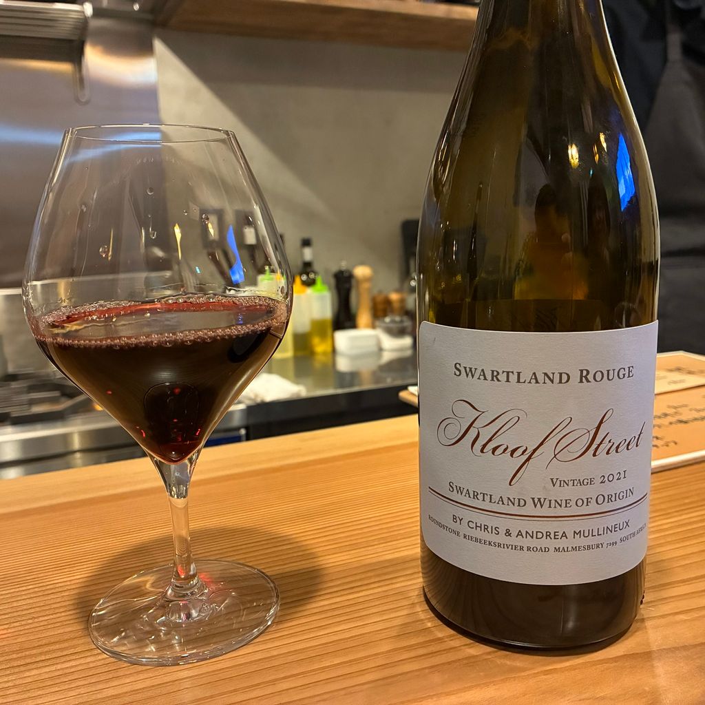 南アフリカの有名生産者マリヌーが手掛ける「クルーフ・ストリート スワートランド・ルージュ 2021」をオーダー!シラー主体で私も大好きなワインなのですが、これをブルーチーズやラングルなどと楽しみつつ、最後はサフランと黒胡椒のチーズとペアリング!実はこのワイン、黒胡椒のようなスパイスの風味が感じられるので、同じく黒胡椒を使ったチーズとの相性は抜群!初めて食べたチーズでしたがとても美味しくて、最後まで幸せな時間を過ごすことが出来ました!