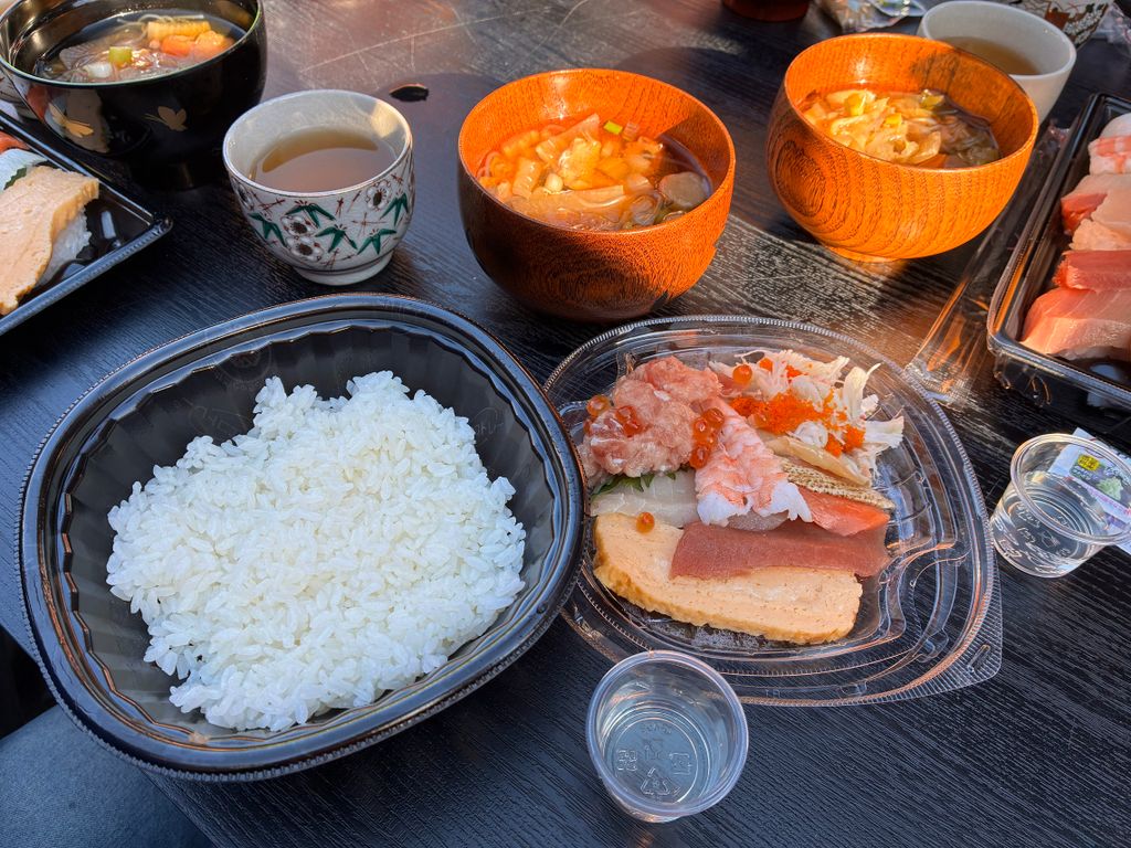 昼休憩時には、さっそく瓶詰めをした慕蔵の酒と海鮮丼で一杯!純米吟醸の無濾過生原酒で、フルーティさの中にもお米の旨味が感じられる味わいで、今年のお酒の出来も上々でした!その後は・・・