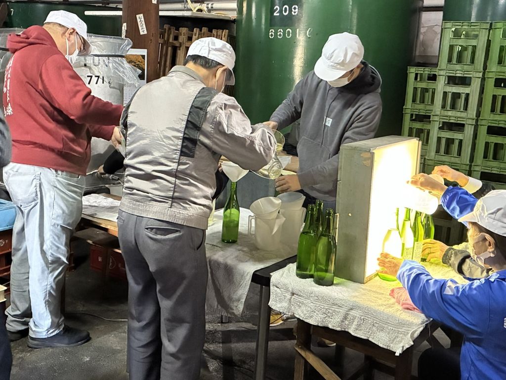 朝から出来上がった日本酒を瓶詰めし、ラベルを貼る作業をひたすら行っていました!ちなみに・・・
