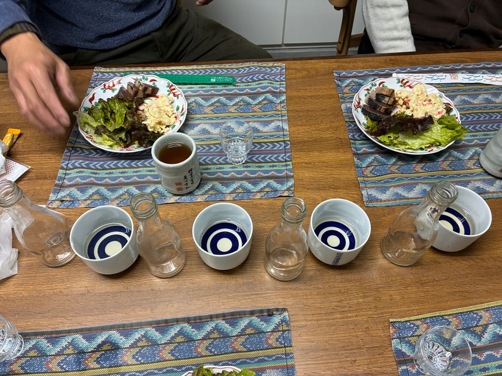 昼食時には、発売前の日本酒の加水量違いを4種類飲み比べし、どれぐらいの加水量が一番バランスが良いかを参加者全員で話し合いました(これはかなり貴重な経験でした)。・・・ちなみに、この時は全て酒蔵さんでの飲みでしたが、別の日の酒造りの時には、仕込みの終了後に参加者達と四日市の街へと繰り出し・・・