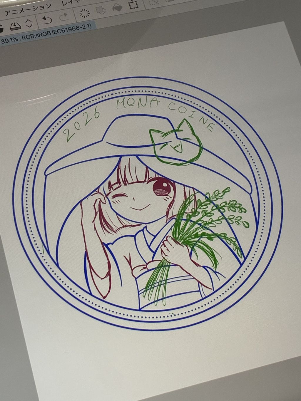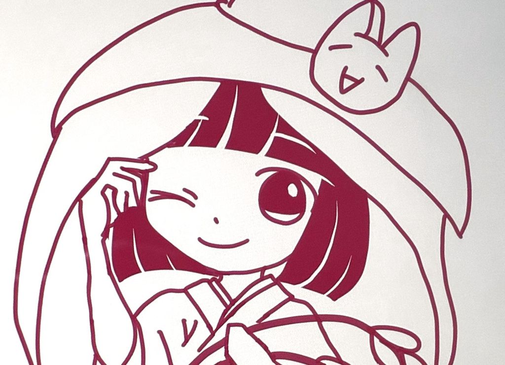 いよいよ線画の工程へ。脳内の理想像を形にするためラフから不要な線を削ぎ落としてブラッシュアップ。途中、可愛さを追求して「ウインク」の表情を採用。なめらかな線を引くための調整を重ね、清書(線画構築)への準備が整う。