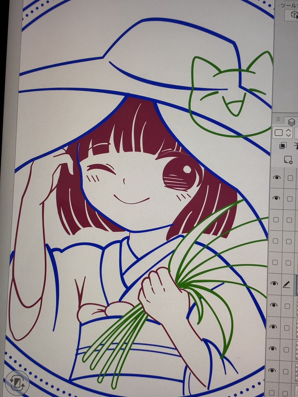 前回作成した線画ラフをもとに可愛さが崩れないように線を少なくしていきます。