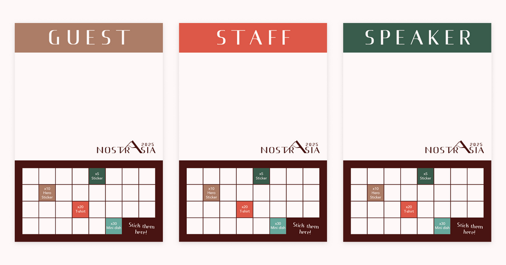 Nostrasiaでは交流を促進するために、参加者同士でシールを交換し、集めた枚数に応じてグッズがもらえる仕組みを導入していました。