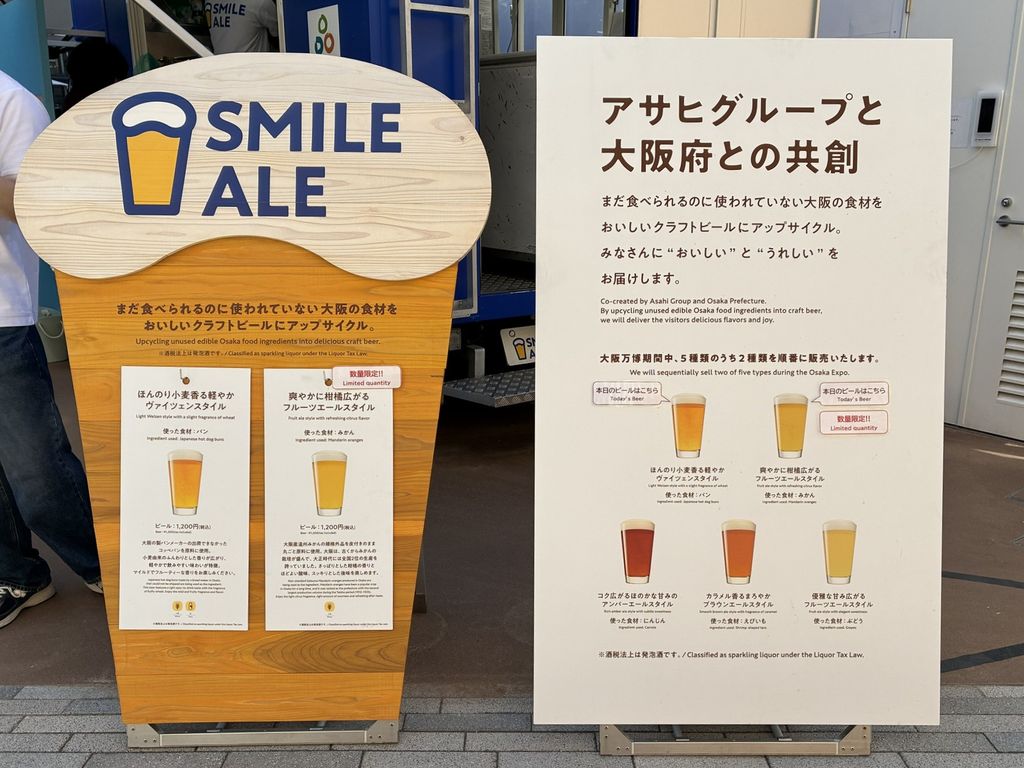 真下から見るとこんな感じで、ちょうど日陰にもなるので快適に過ごせそうなエリアです!さて、そんな話題に事欠かない万博会場で、お酒にまつわることを探してみると・・・さっそく見つけました!