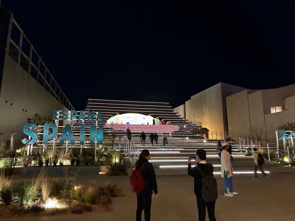 こちらのスペイン館!夜になるとそれぞれのパビリオンがライトアップされるので、昼間とはまた違った趣があってとても良い雰囲気です!この時間は待ち時間なしで入れると言われたのでとりあえず入ってみましたが・・・
