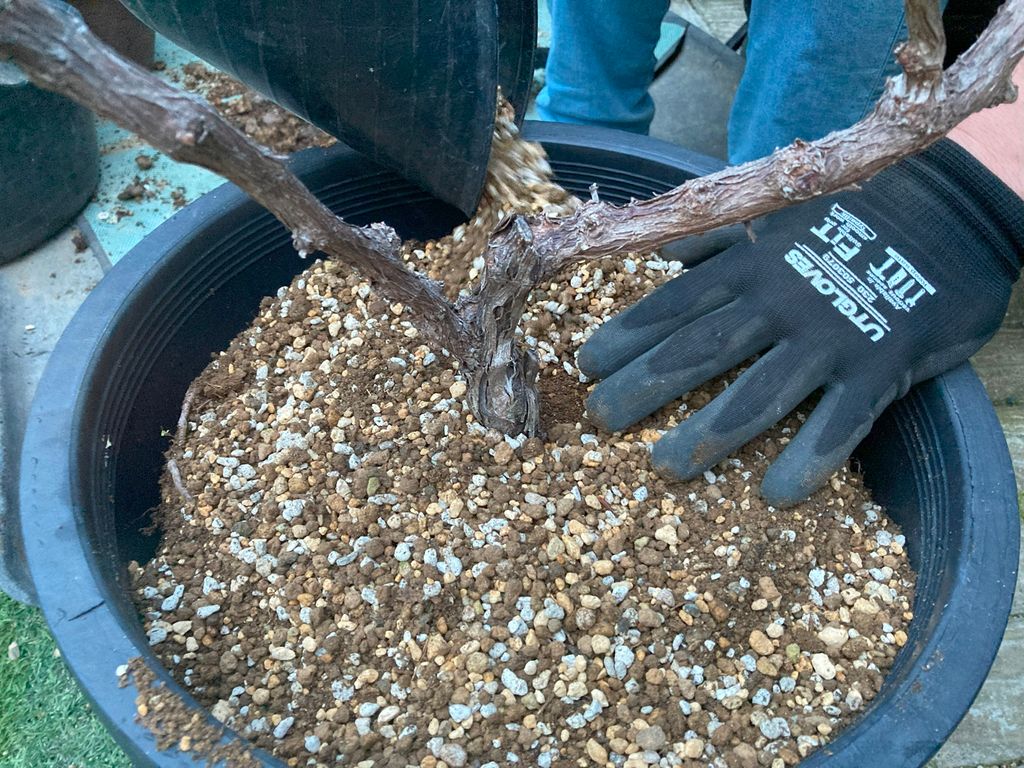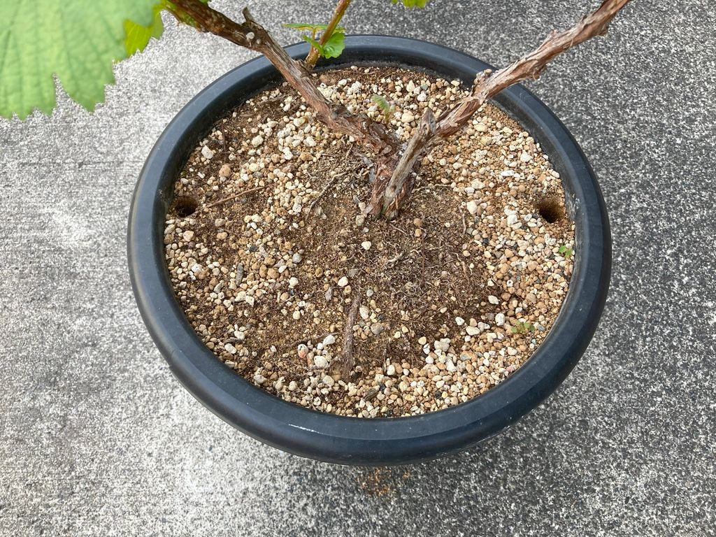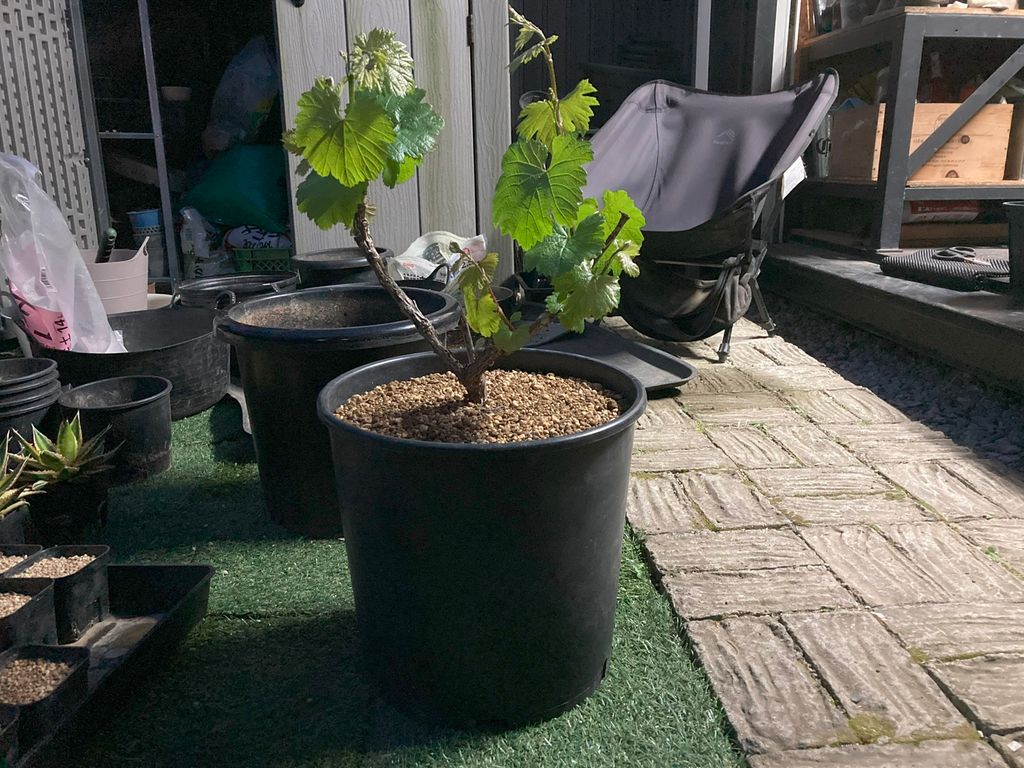 無事に鉢増しが完了しました!挿し木から3年目、段々と風格が出てきましたね〜!そして、最後は一番大きい鉢植えのブドウ達ですが・・・