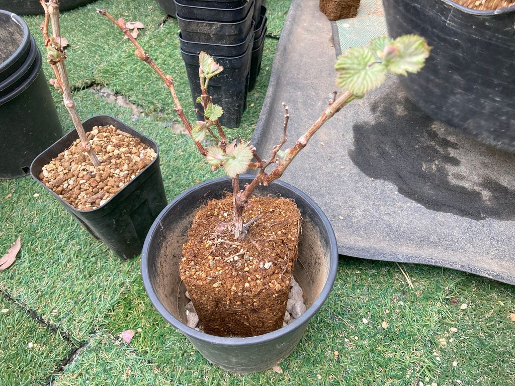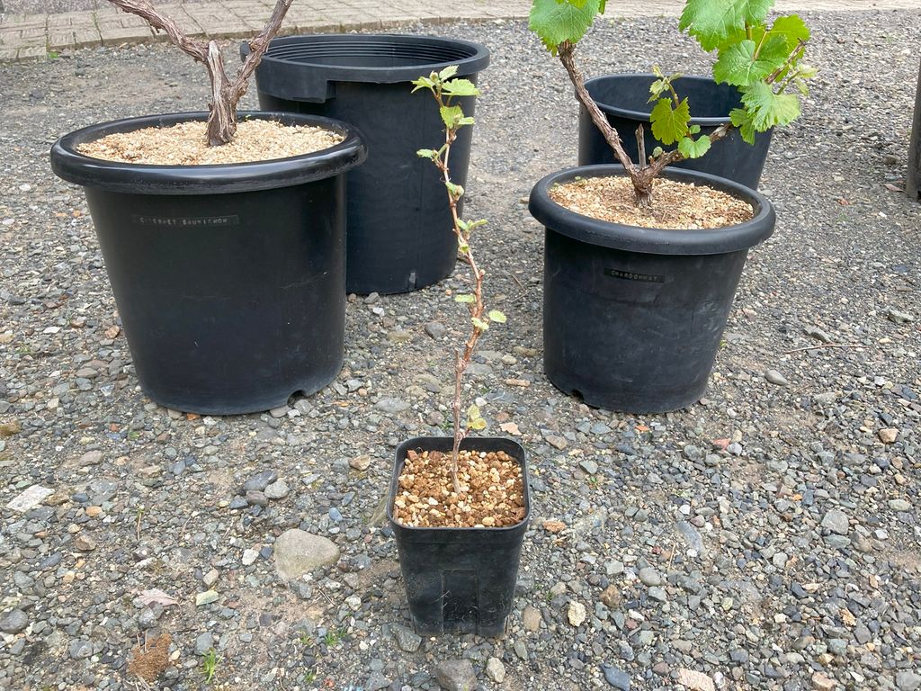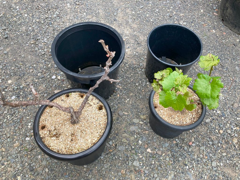 新しい引越し先の鉢選びから始めます。今回、シャルドネちゃんは9号サイズへ、カベルネちゃんは11号サイズへとサイズアップすることになりました!一方、小さい鉢植えの挿し木達はと言うと・・・