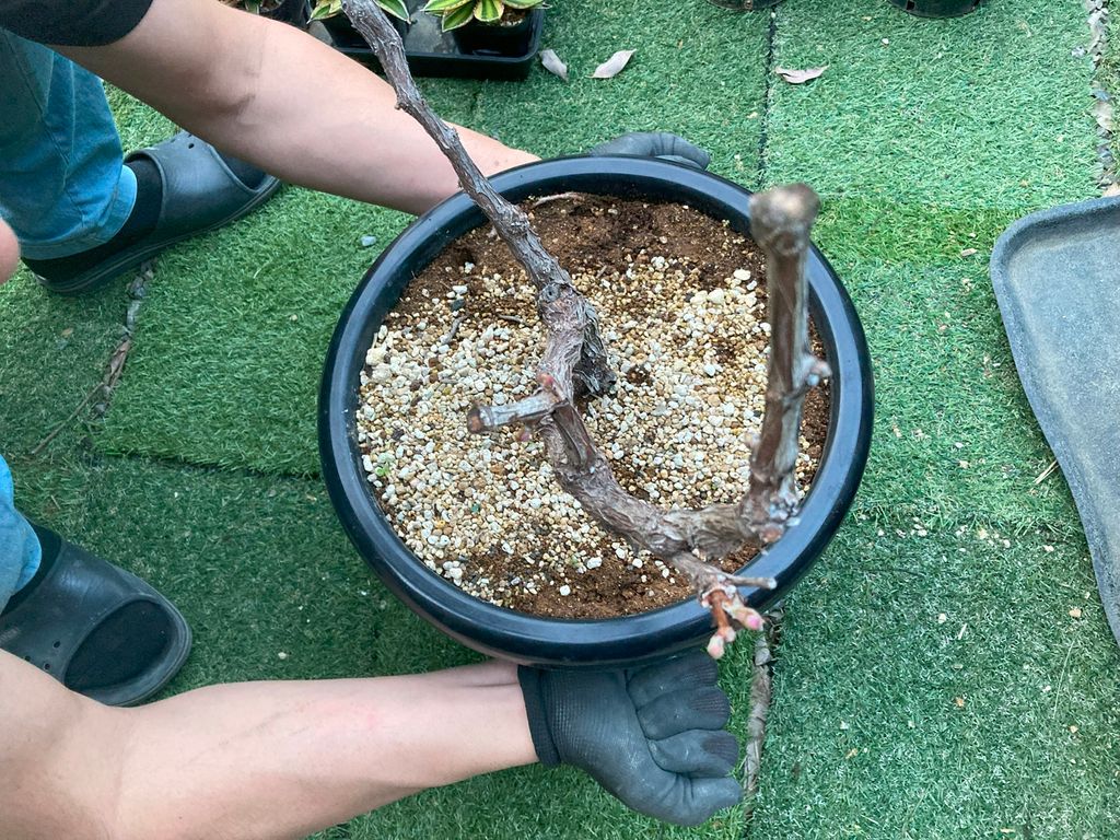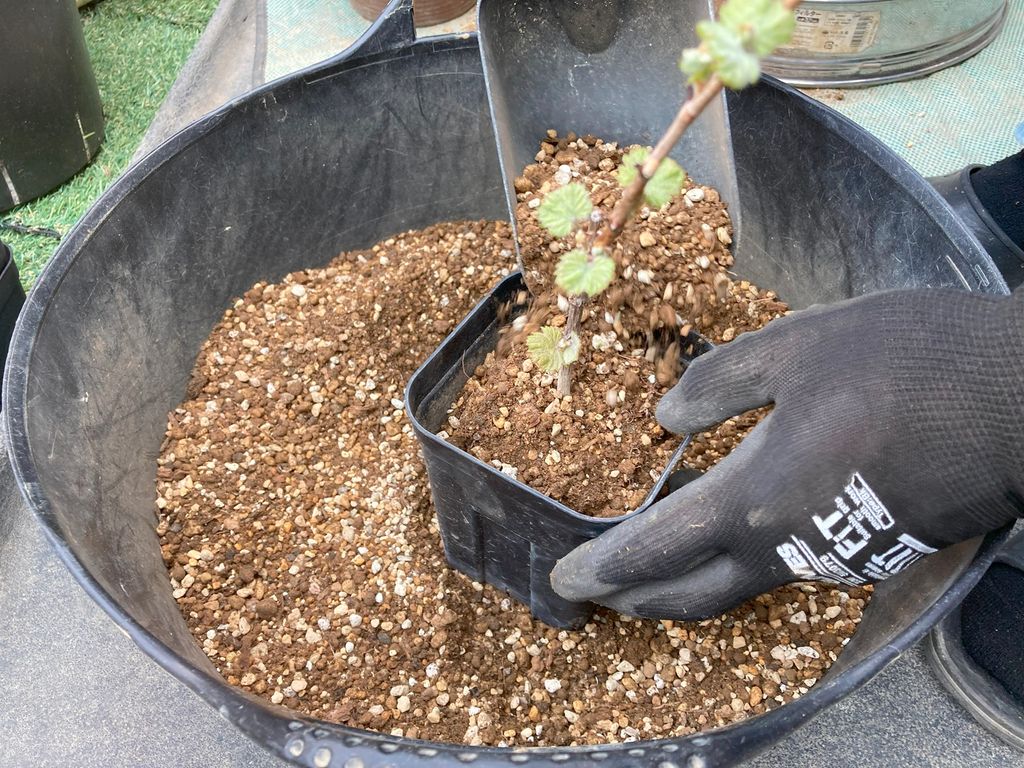 鉢増しの完成です!こちらは9号サイズなので、今の私にも対応は可能です(笑)!・・・こうして、今シーズンも無事に鉢の植え替え作業が完了しました(すっかり辺りが暗くなってる(笑))!鉢のサイズがそれぞれ大きくなったので、家に帰ったらどのような配置にして置くかを考えなければなりませんが(スペースが限られているので(笑))、・・・とある事情から、実はこの日ブドウ達を持ち帰ることが出来ませんでした。その理由に関しては有料部分に書いてありますので、ご興味がある方はぜひそちらもご覧ください(まあ、大した理由ではありませんが(笑))。