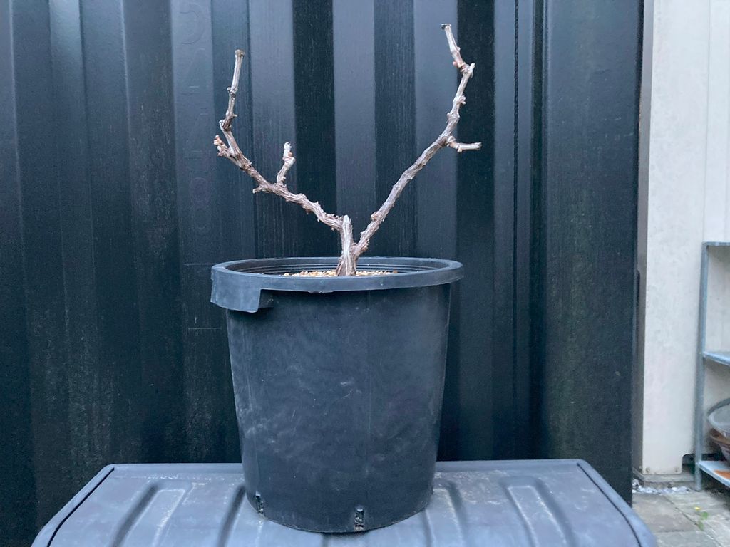挿し木の先輩カベルネですが、最初にイメージしたこちらの鉢ではややサイズ感が小さい感じになってしまったので・・・