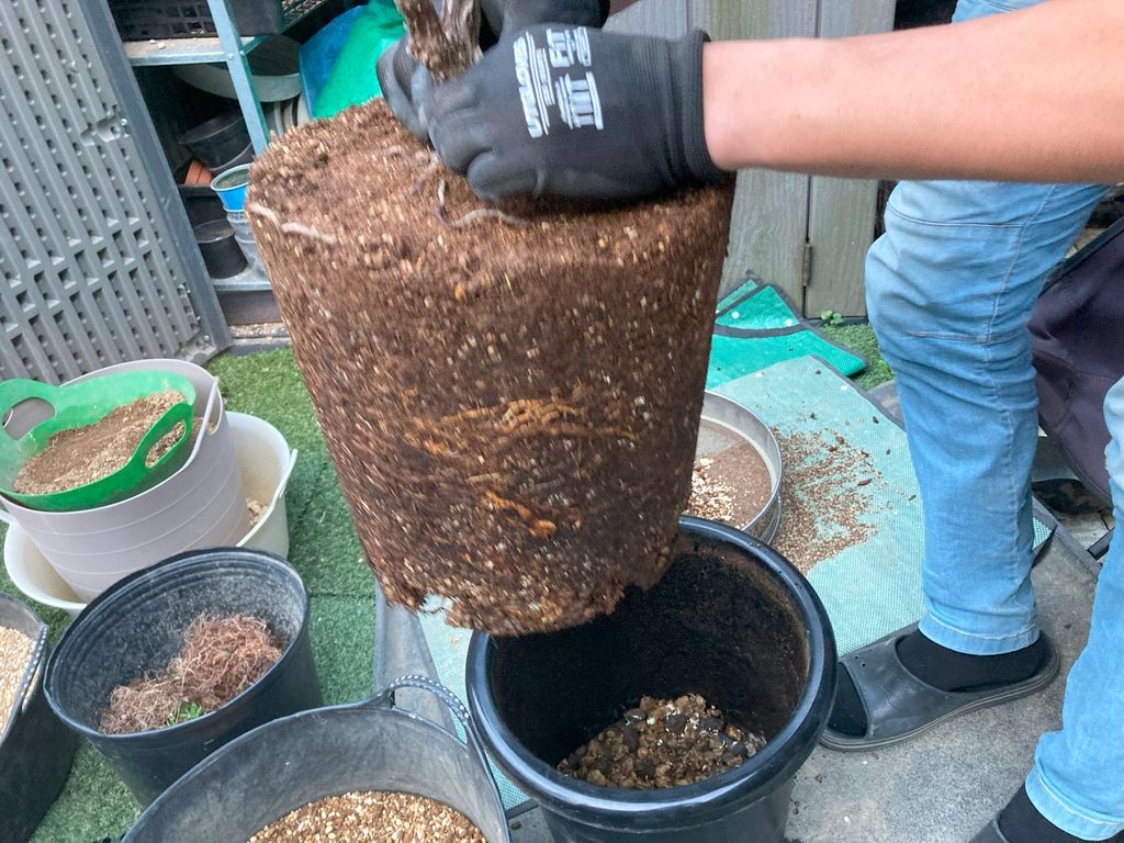 こちらも根鉢のまま入れて、周りから土を隙間なく流し入れたら・・・
