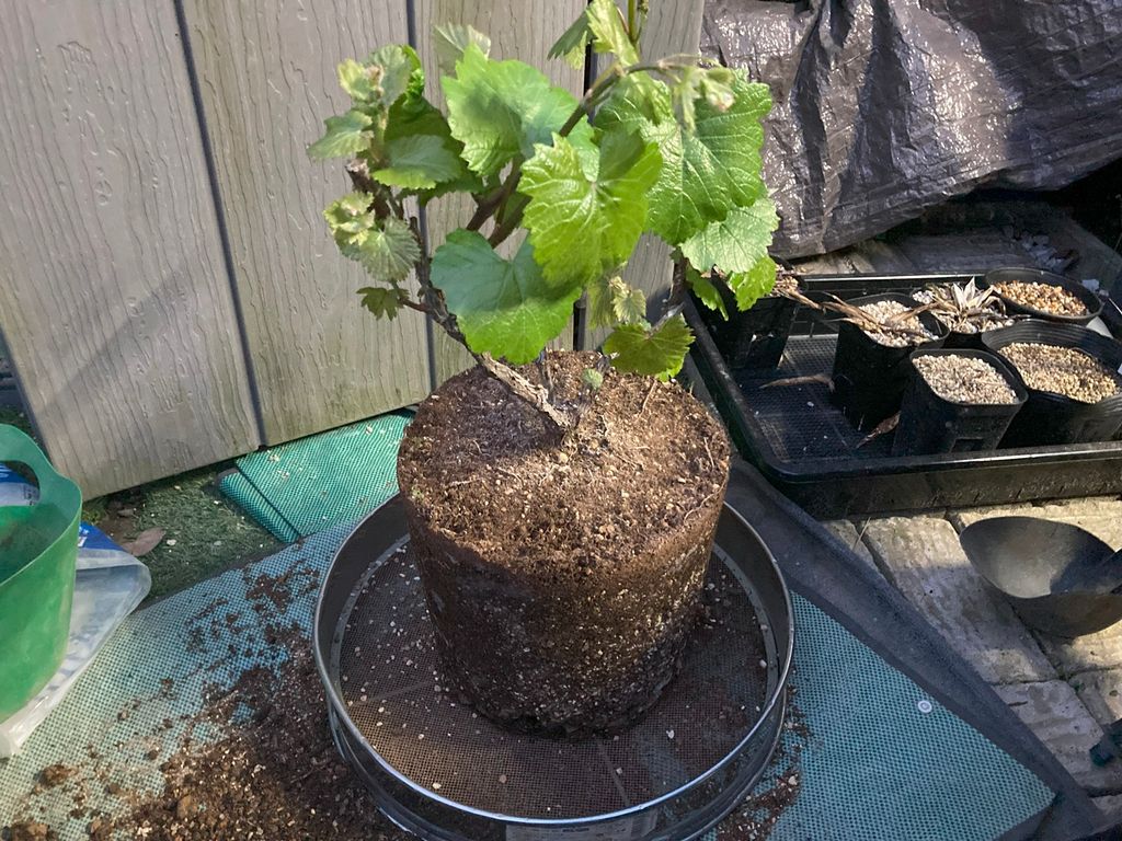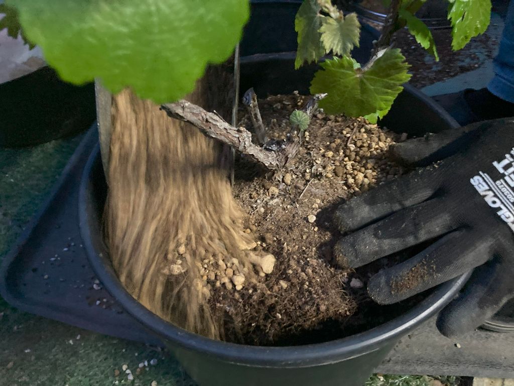 どのサイズにするか悩み中(さすがにこれは大き過ぎるか(笑))。とりあえず、シャルドネの鉢から引き抜いてみると・・・