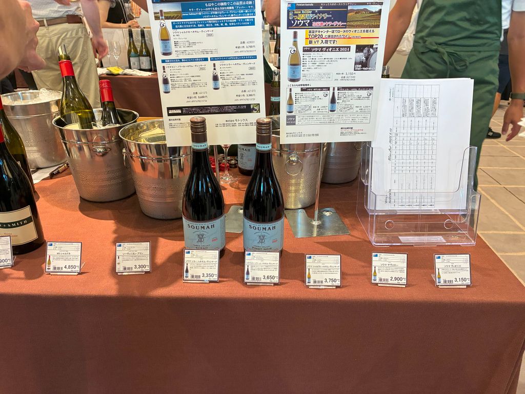 同じくいつもお世話になっている、モトックスさんのブースへ!今回は、2回のセミナーのどちらにも登場したヤラ・ヴァレーの生産者「ソウマ」のワインや・・・