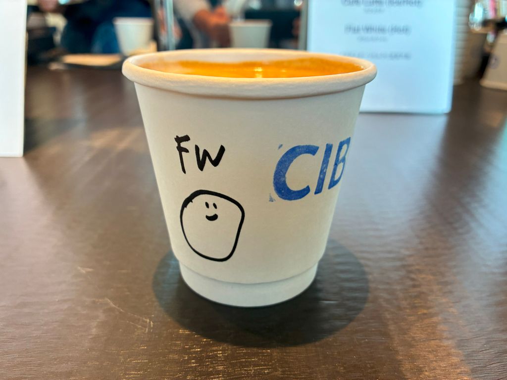 側面には「FW(フラットホワイト)」の文字と、可愛らしい絵も描かれていました!