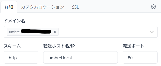 転送ホスト名/IP: umbrel.local