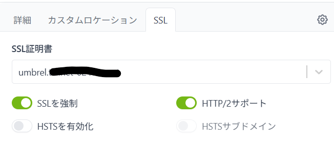 SSL証明書のプルダウンメニューで先ほど追加したtailscale証明書を選ぶ。