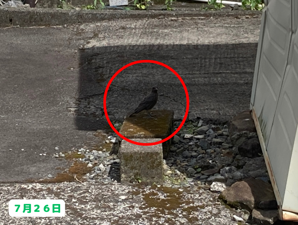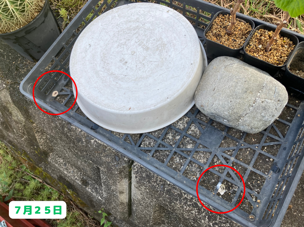 7月25日の写真に、よく見ると鳥の糞の跡を発見!さらには・・・