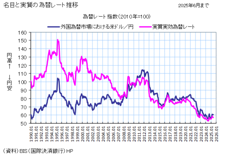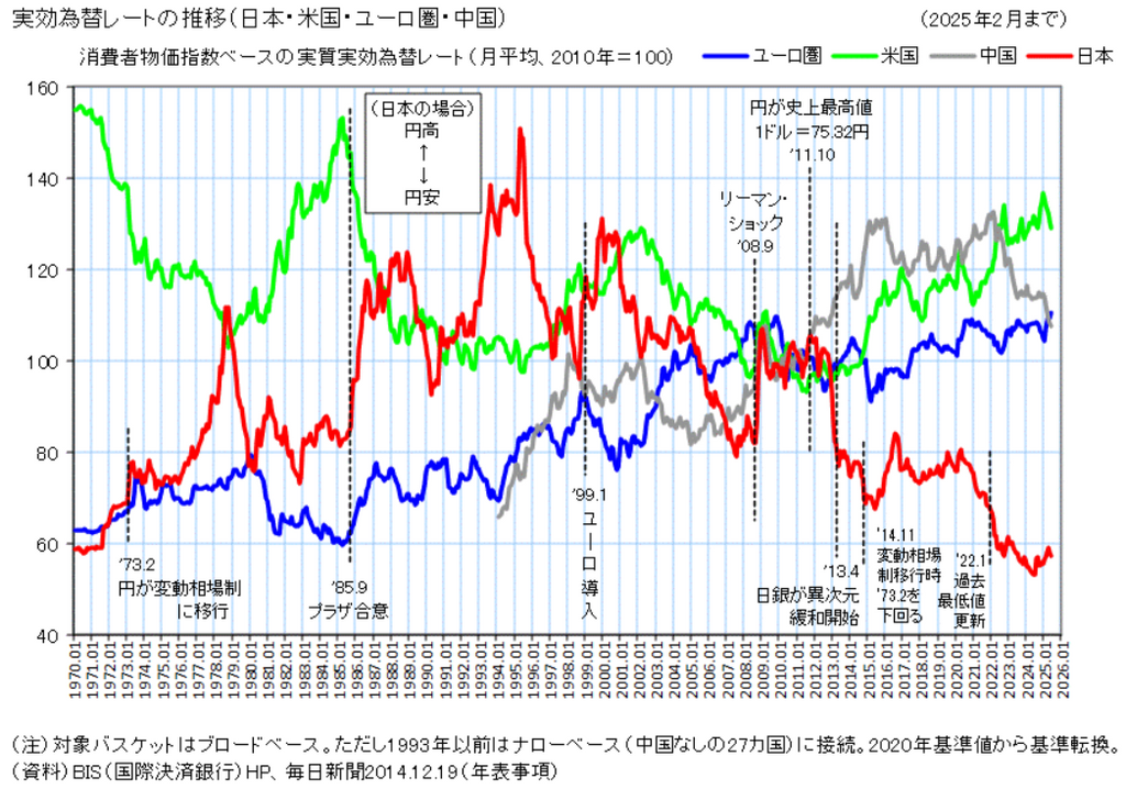 主要国為替推移:変動相場制移行以後の過去最低値更新中の¥