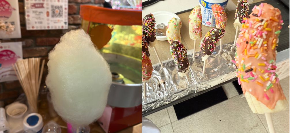 屋台の定番、綿菓子とバナナ各500sats。的屋価格じゃなくてめちゃくちゃ安いですね。ちゃんとP2Pだからか。。笑