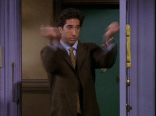 ロスがレイチェルにやったこの動作。モニカいわく、ロスが彼らの親を嘲るために作ったもので、中指を立てずに「中指を立てる」方法だといっています。Giving the fingerで中指を立てて相手を挑発するしぐさをあらわします。