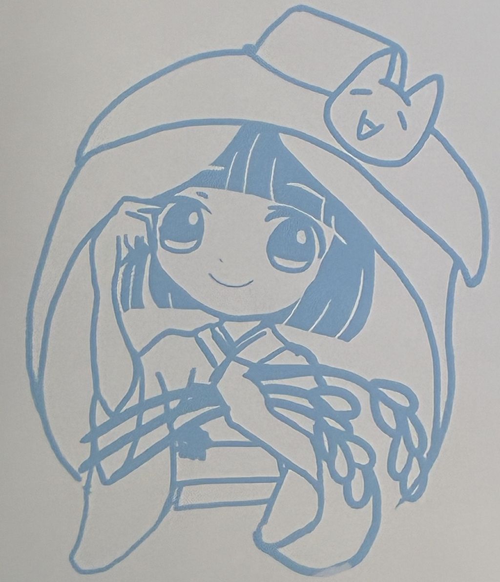 ラフの線を太く&少なくします。また可愛さのみなもとの眼を注意深く描写。おしとやかな可愛い女の子の完成ですね~