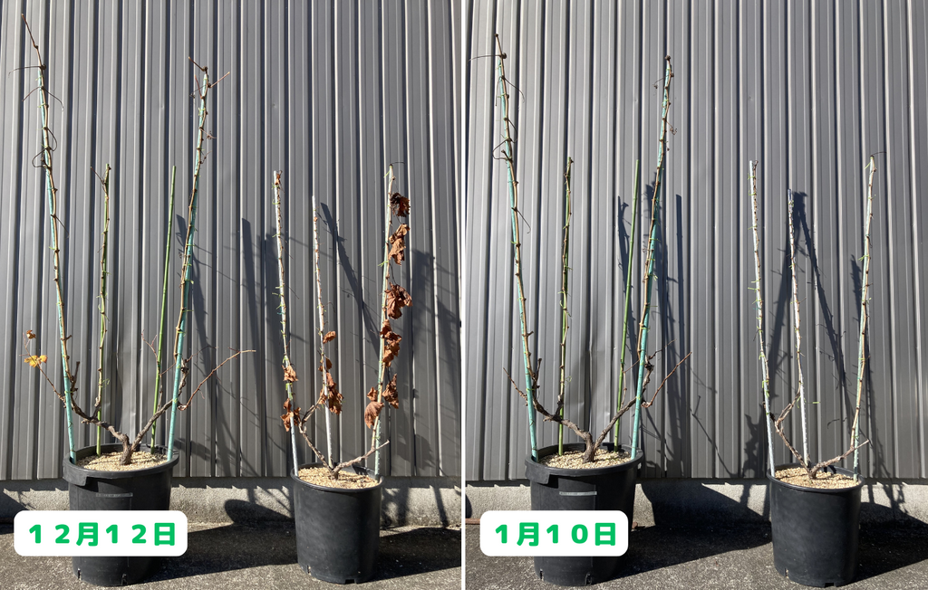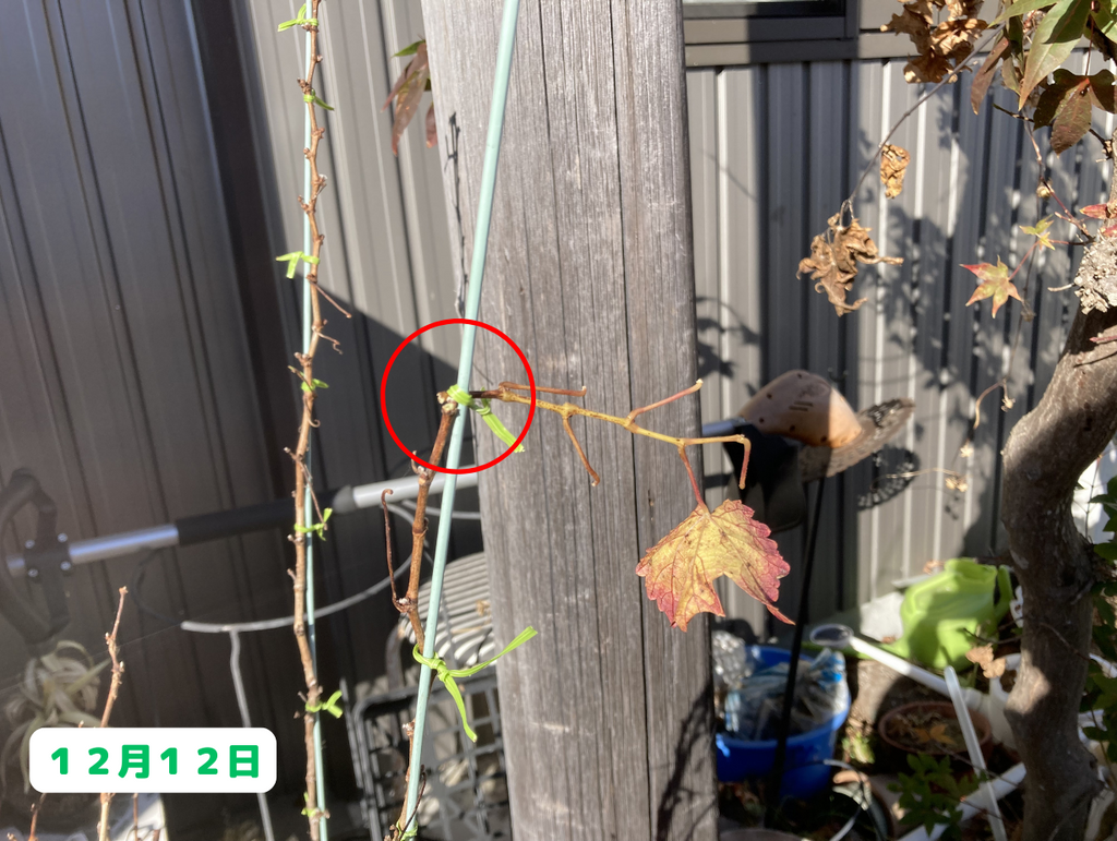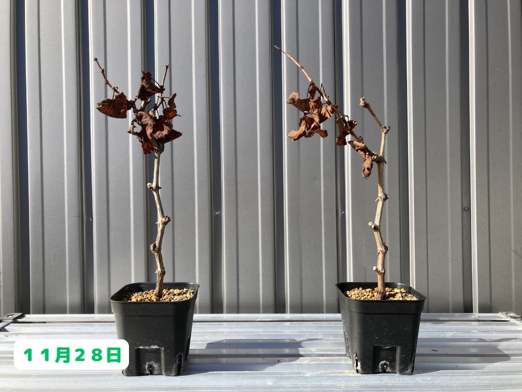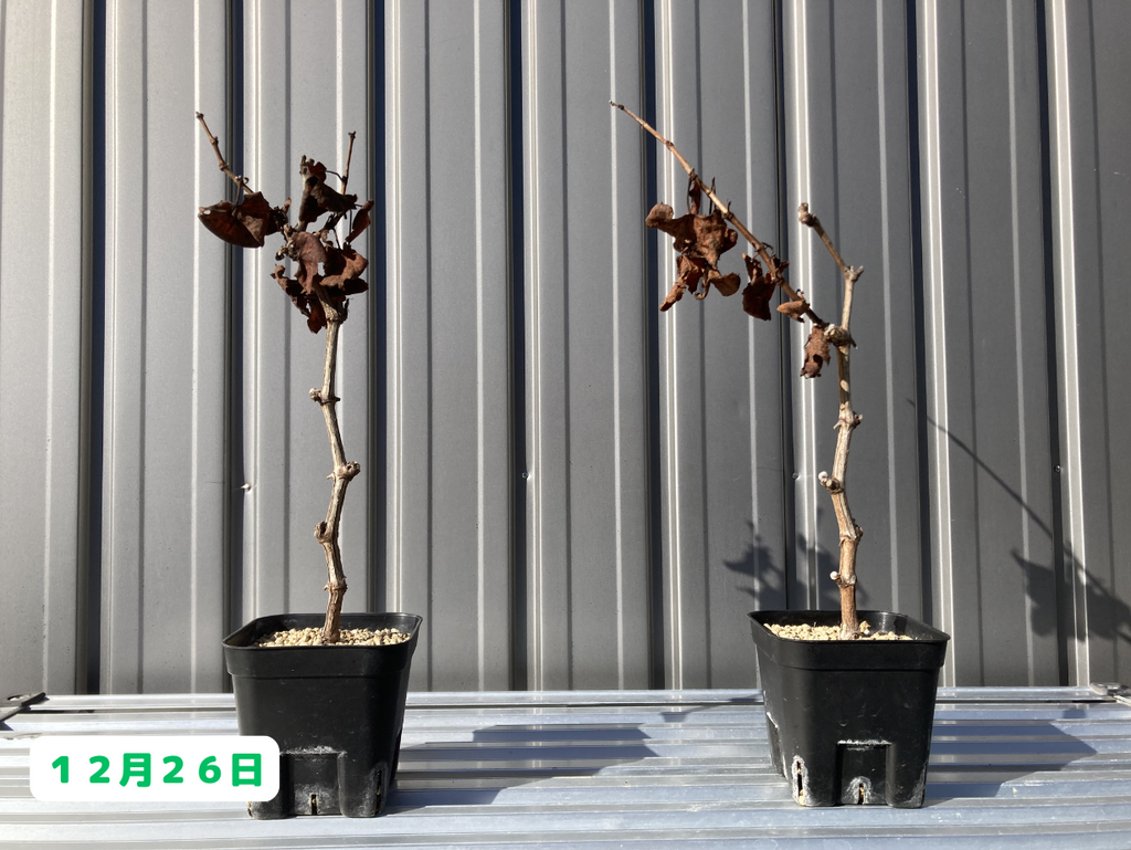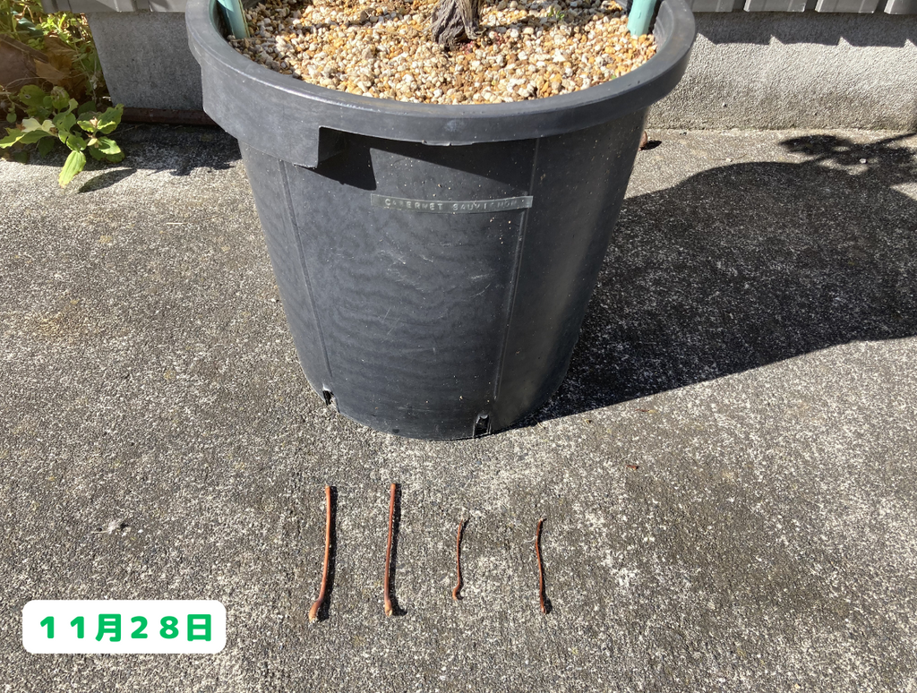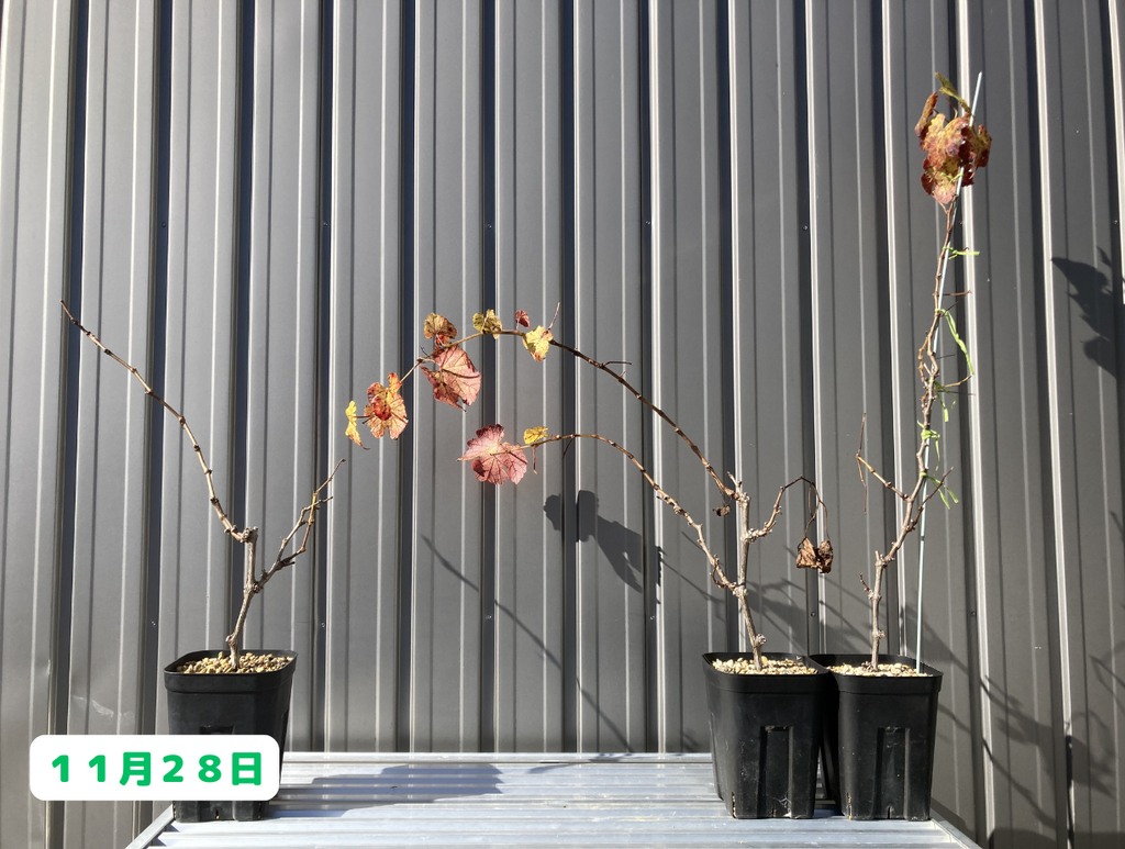 鉢植えの先輩カベルネですが、すでに11月の時点でほとんどの葉が落ちてしまい・・・
