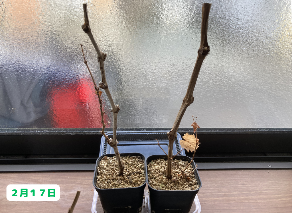こちらの挿し木のブドウ達!この時点ではまだ沢山の葉が残っていましたが・・・