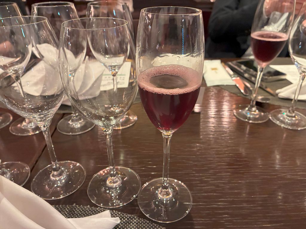 乾杯酒として注がれたのは、なんと赤のスパークリングワイン!あまり見かけない珍しいスパークリングワインですが、実はオーストラリアではシラーズなどを使った赤のスパークリングワインがあります。そこで・・・