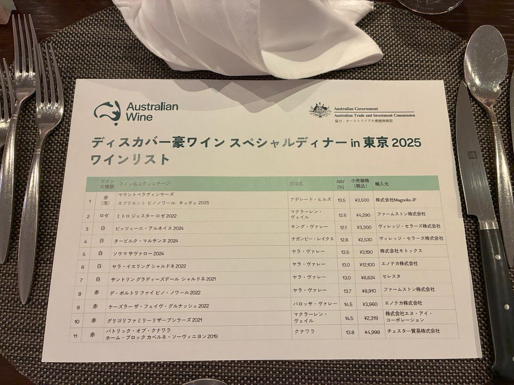 「ディスカバー豪ワイン スペシャルディナー 2025」に参加してみた