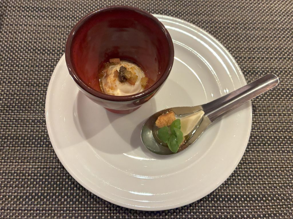 いよいよお料理もスタート!まずは「新玉ねぎのムース 〜オーストラリア産トリュフペースト〜」と「オーストラリア産モッツァレラとトマトのジュレ 〜夏仕立て〜」が登場!続いて・・・