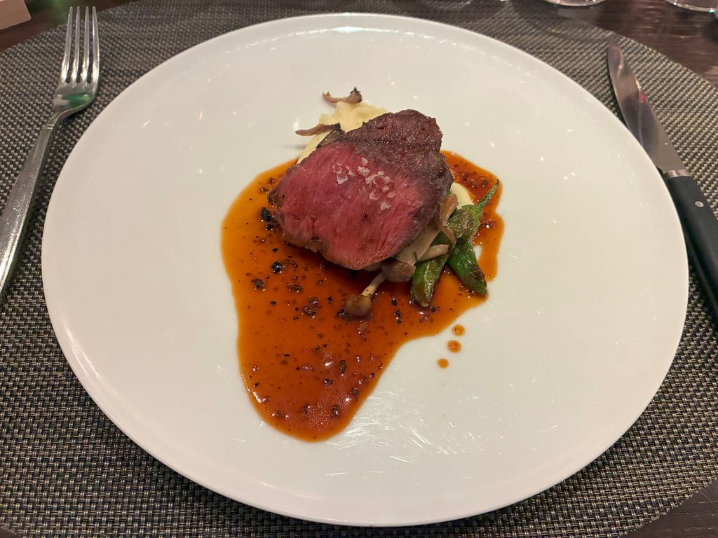 「オーストラリア産牛のグリル 〜トリュフのソース 獅子唐辛子添え〜」が登場!みなさんもご存知の通り、赤ワインと牛肉との相性は鉄板なので、素晴らしいペアリングとなりました!最後は・・・