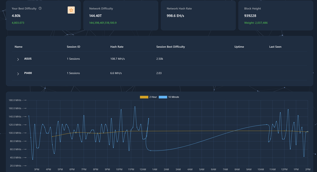現在のビットコインは「ASIC」という超強力な専用マシンで掘るのが前提となっており、ラズパイのCPU(ハッシュレート: 約 5.8 MH/s)では計算力が圧倒的に足りません。