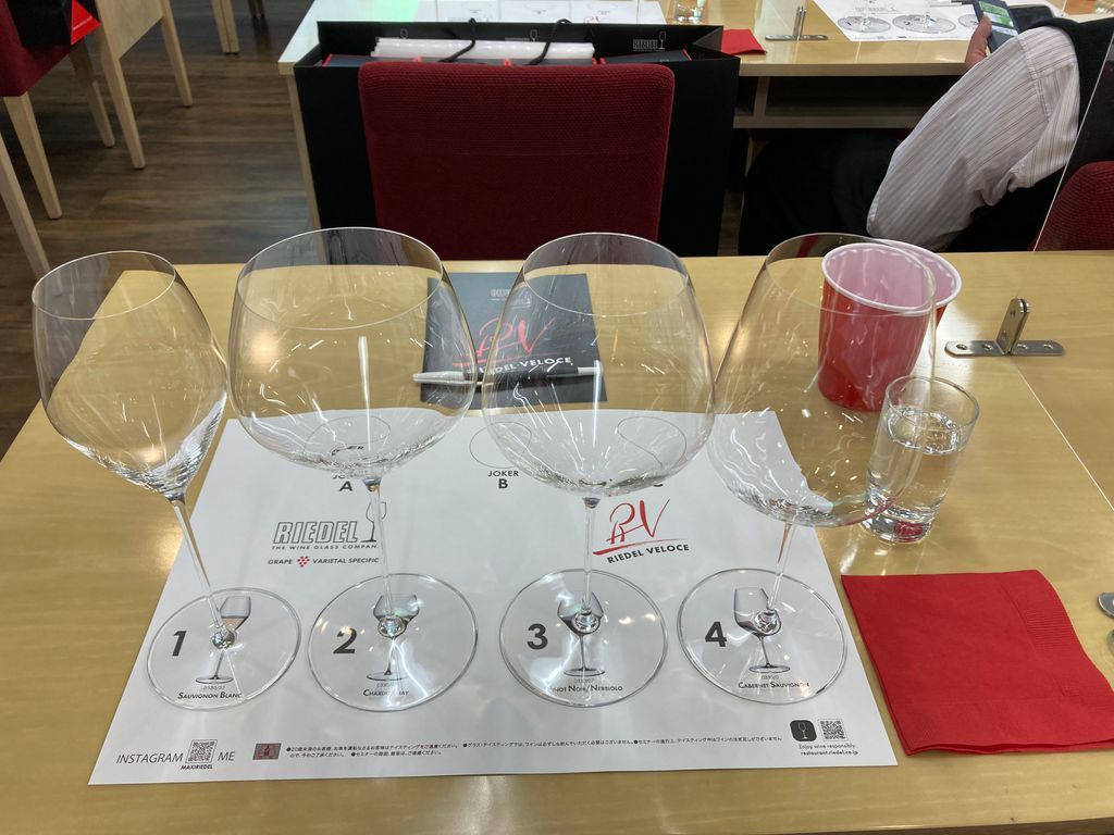 愛用しているワイングラスです(品種ごとにグラスの形状が異なり、それによって味わいが変わります。過去に参加したセミナーの様子はこちら)!また別の日には・・・