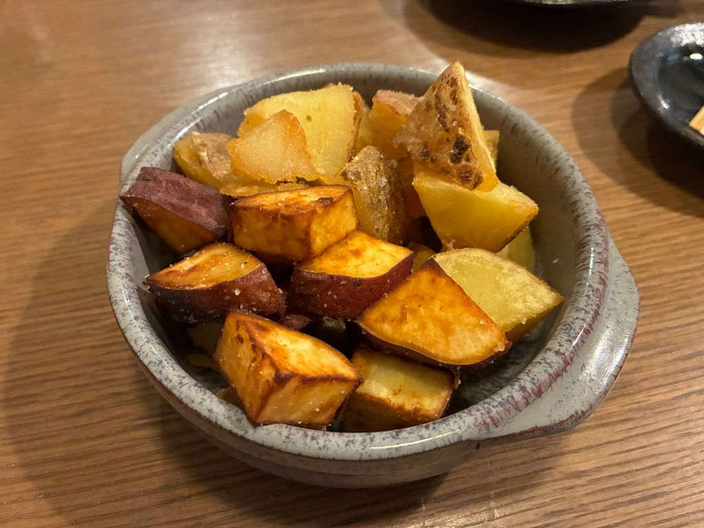 いつもついついオーダーしてしまうフライドポテトも登場(しかもこの日はじゃがいもとさつまいもの2種盛り)!ワインが進みます(笑)。続いては・・・