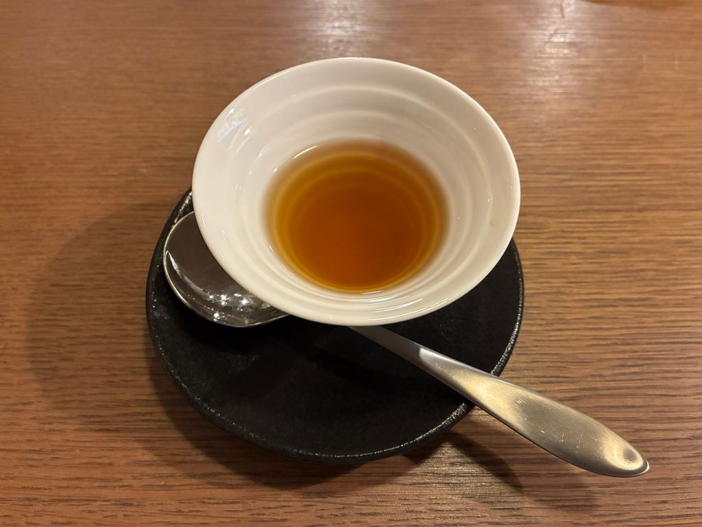 コンソメとキノコのスープが登場!旨味のある深い味わいで、ホッとする時間が流れます。続いては・・・