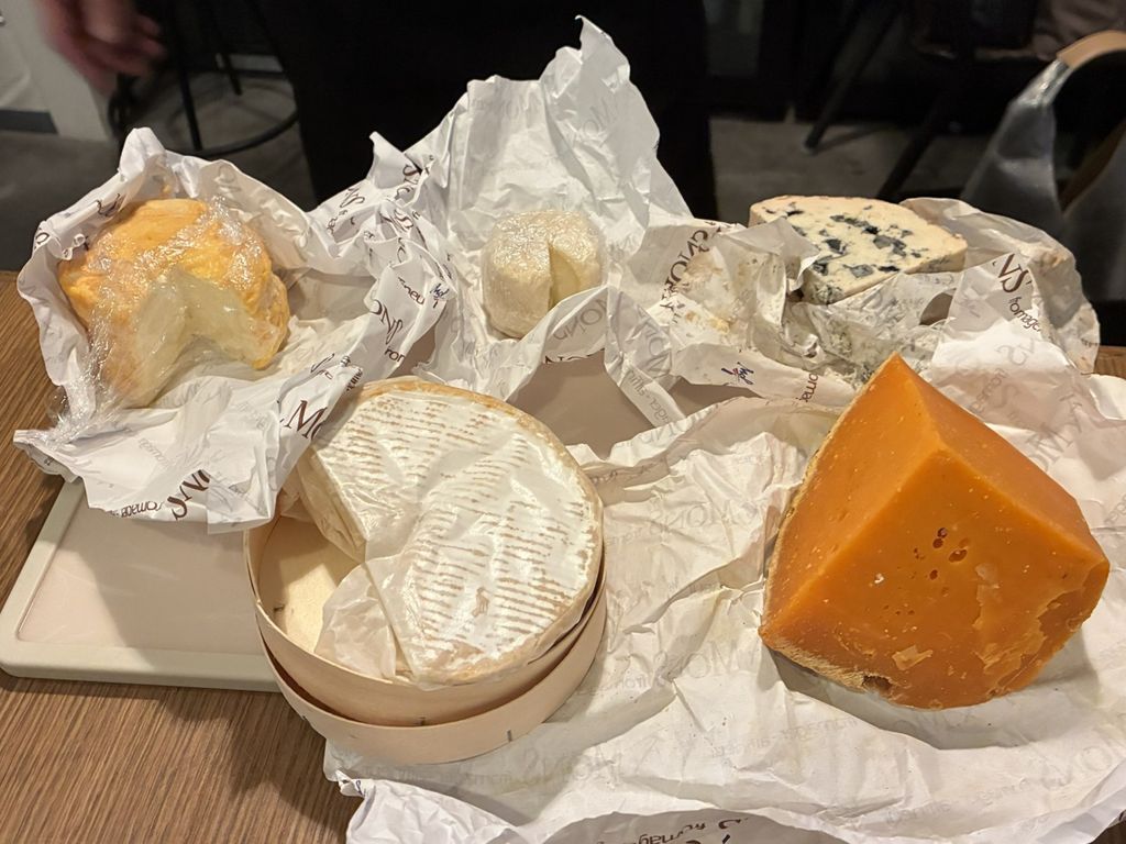 チーズを見せてもらうことに!以前のブログでもご紹介しましたが、アピスさんが取り扱っているチーズは非常にクオリティが高い!この日は「ミモレット(ハード)、カマンベール(白カビ)、ラングル(ウォッシュ)、クロタン・ド・シャヴィニョル(山羊)、フルムダンベール(青カビ)」の5種類で、その中から・・・