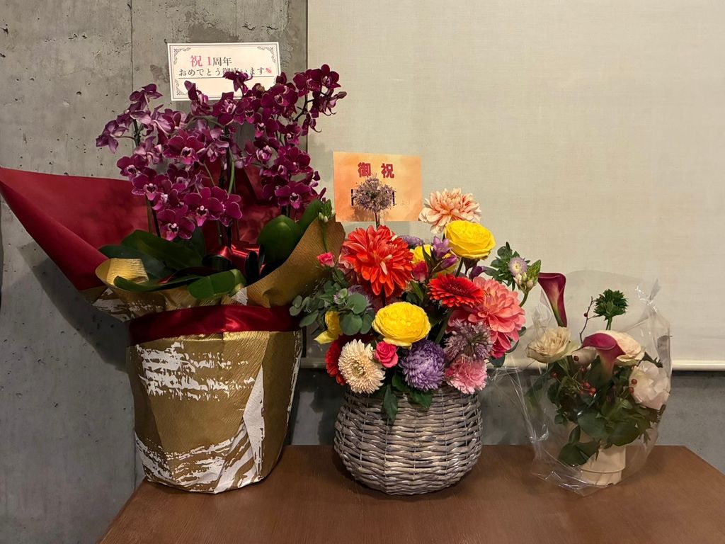 店内には沢山のお祝いのお花が(真ん中が私達のお花です(笑))!そして、みんなが揃ったところで、まずは・・・