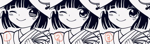 前回作成した線画ラフをもとに、可愛さを維持しつつ線を整理する作業へ。難易度の高い顔や手の構造に苦戦しつつも、市女笠や衣服を含めた全体の線画がついに完成。