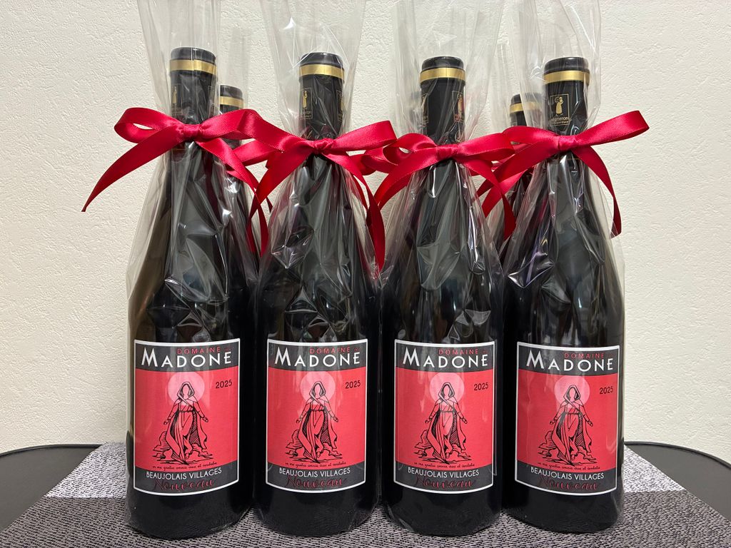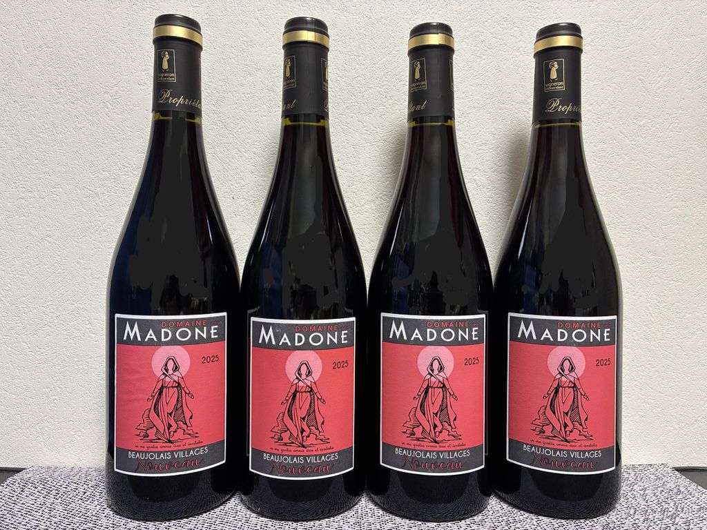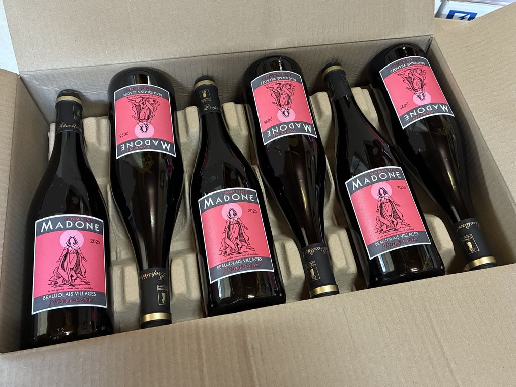 このように無事に納品されました!今年も当店で扱うヌーヴォーは「ドメーヌ・ド・ラ・マドンヌ」さんの「ボージョレ・ヴィラージュ・ヌーヴォー」です!そして、今年のラベルも・・・