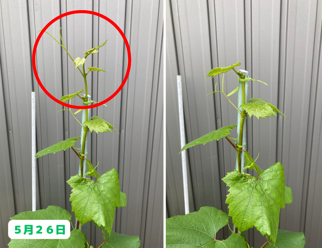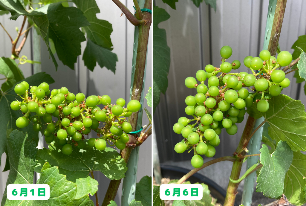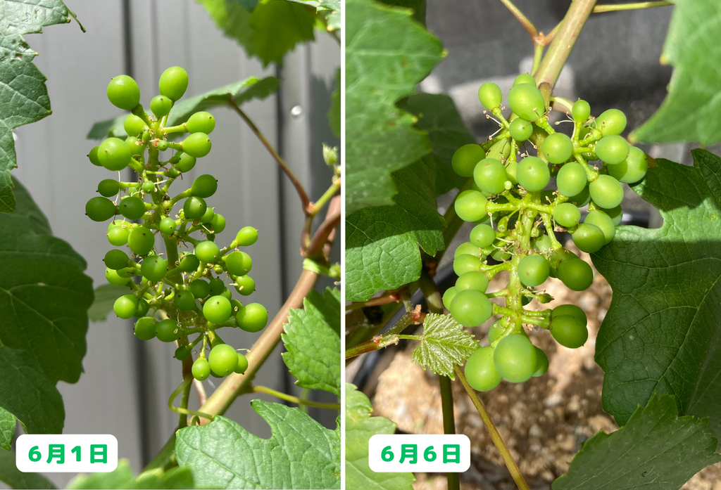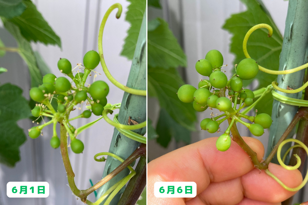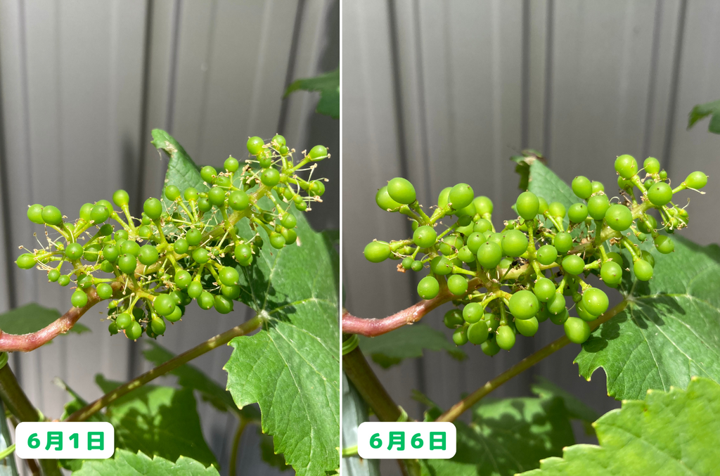 わずか5日間でここまで成長するとは、ブドウの生命力には毎年驚かされます!