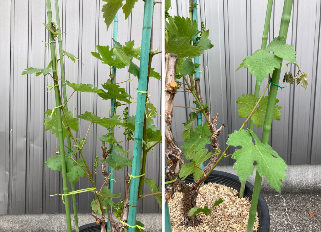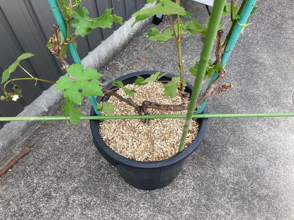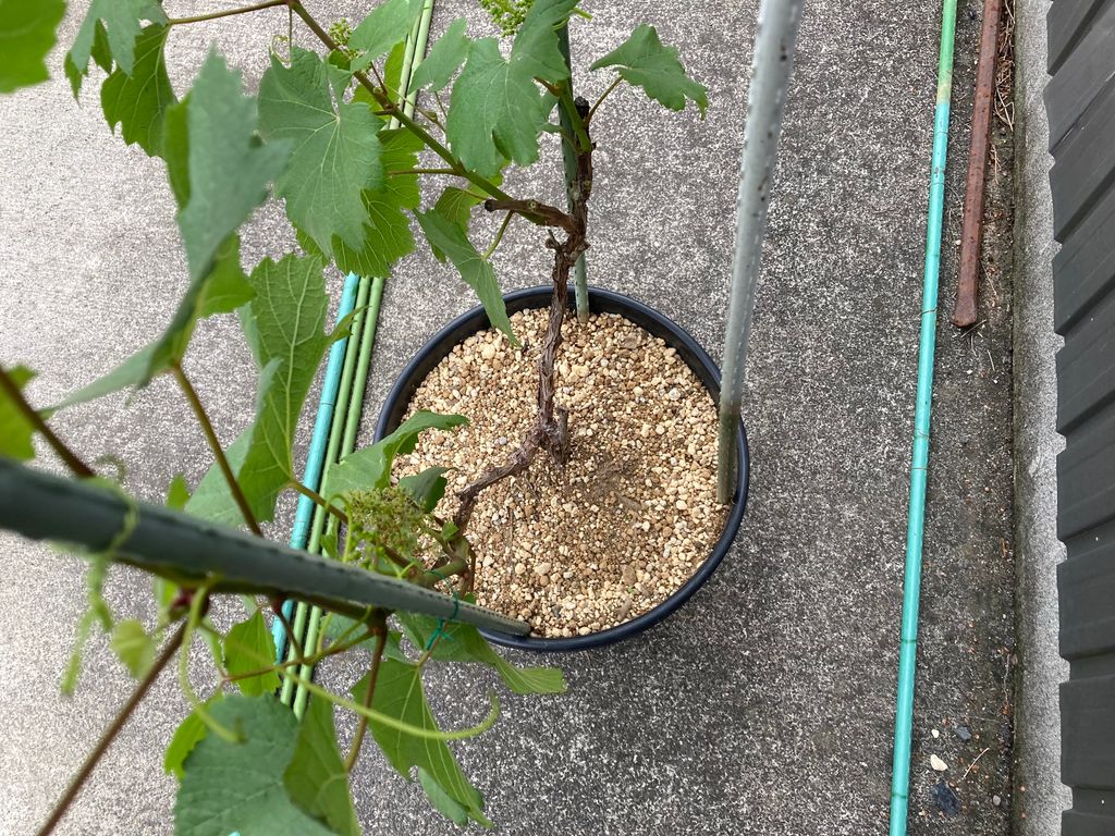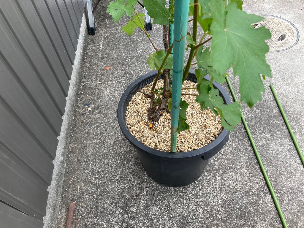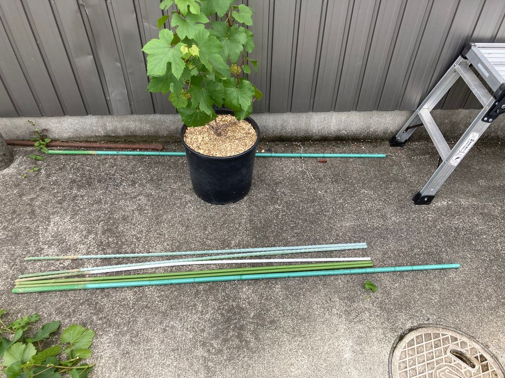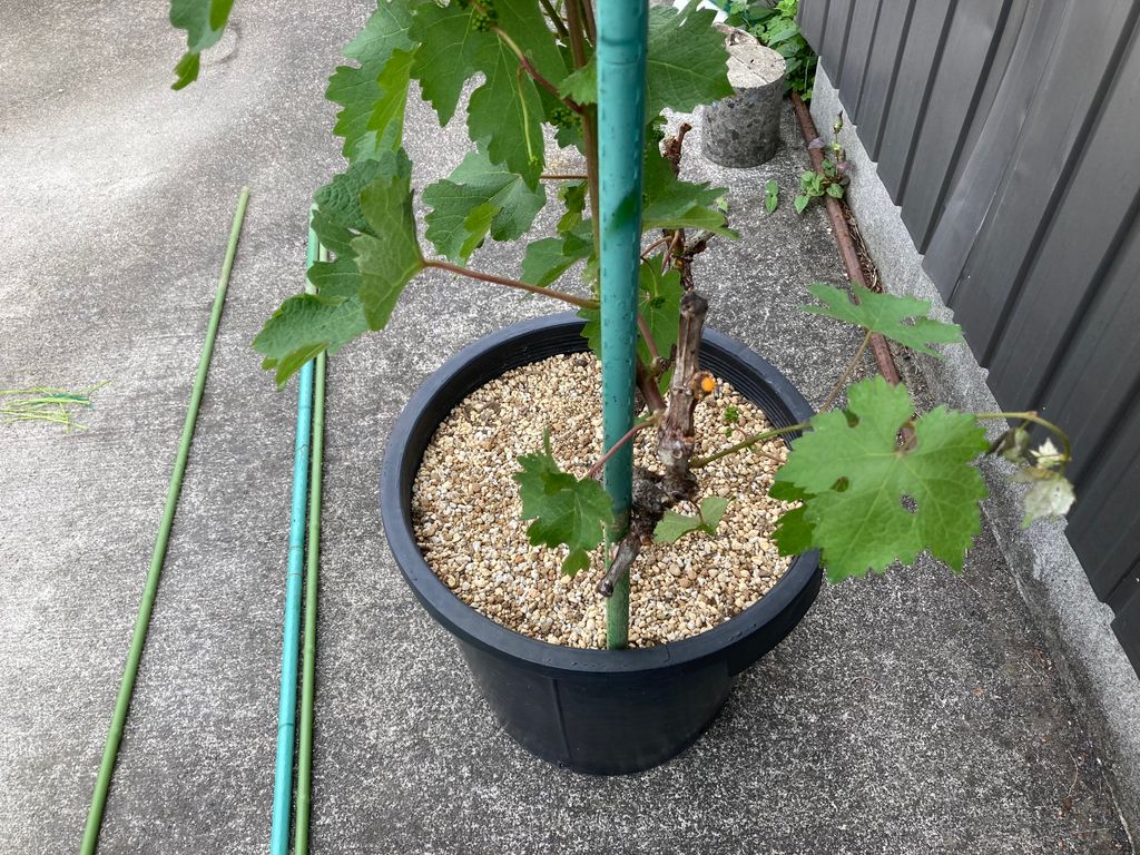 このシャルドネちゃんの鉢植えに支柱を立てていきたいと思います!