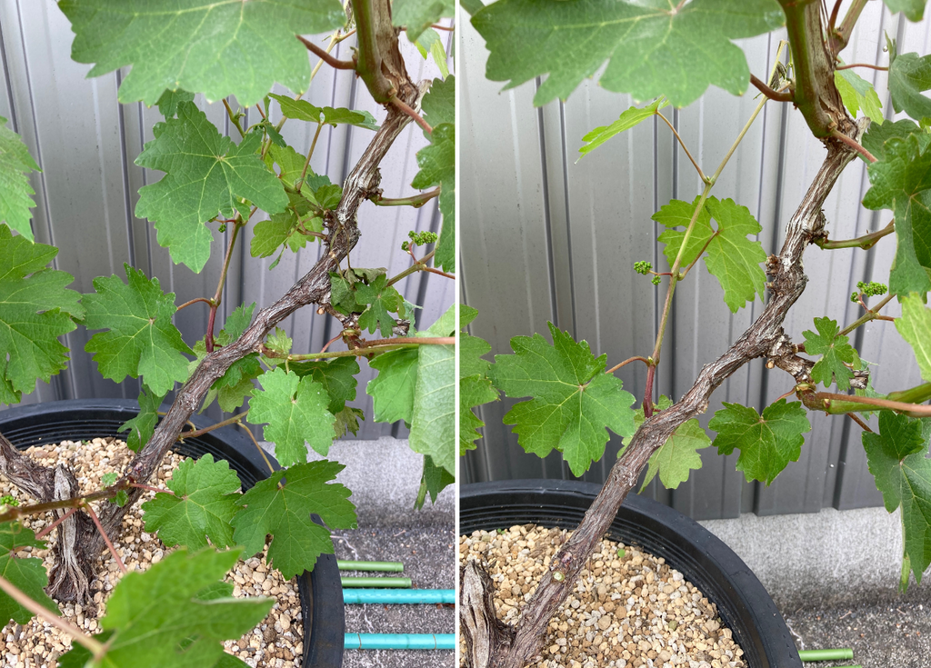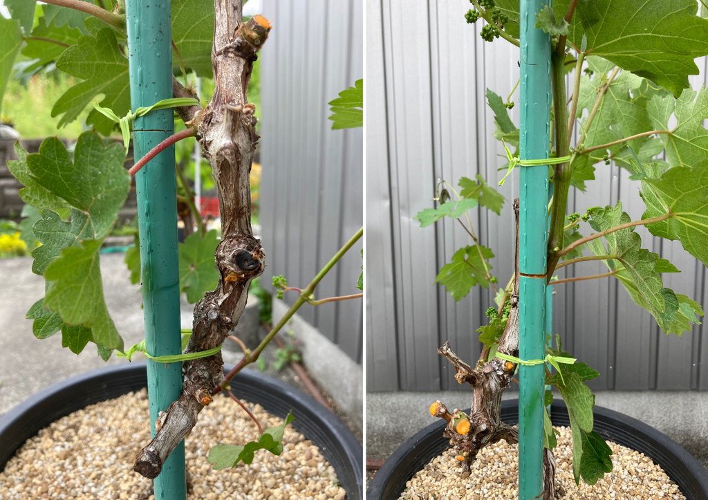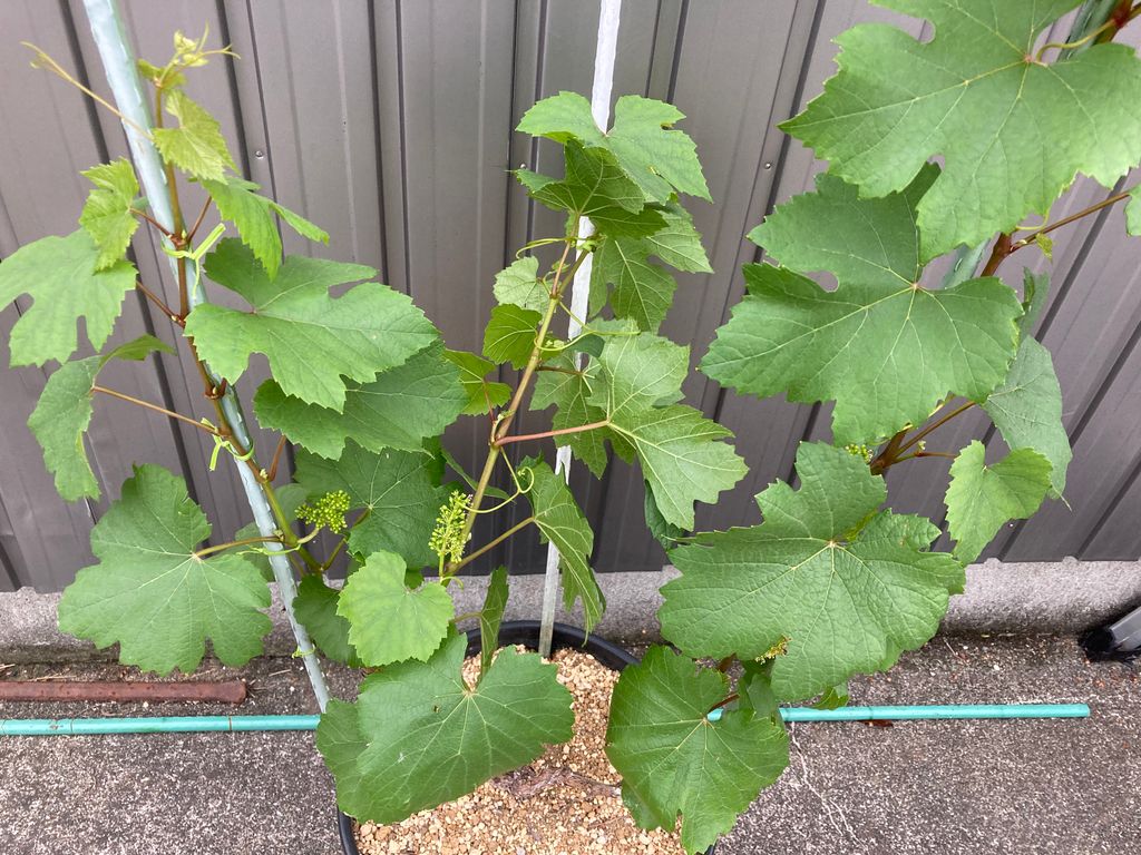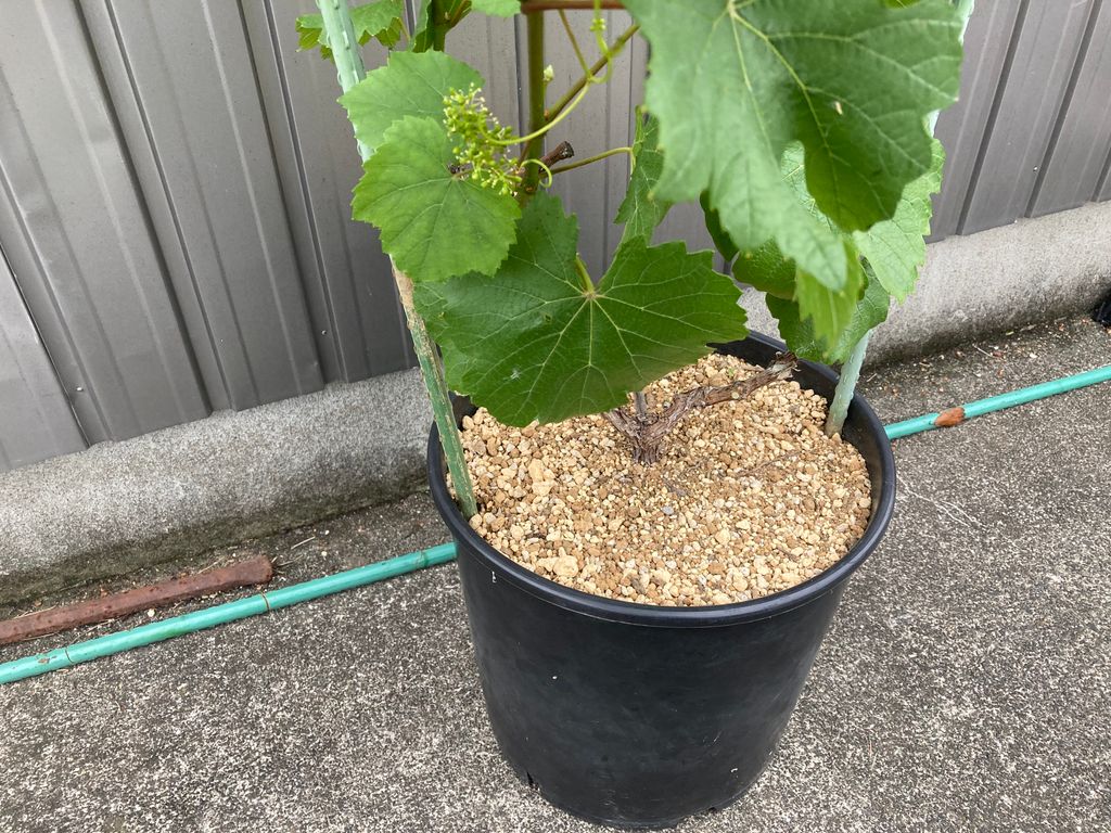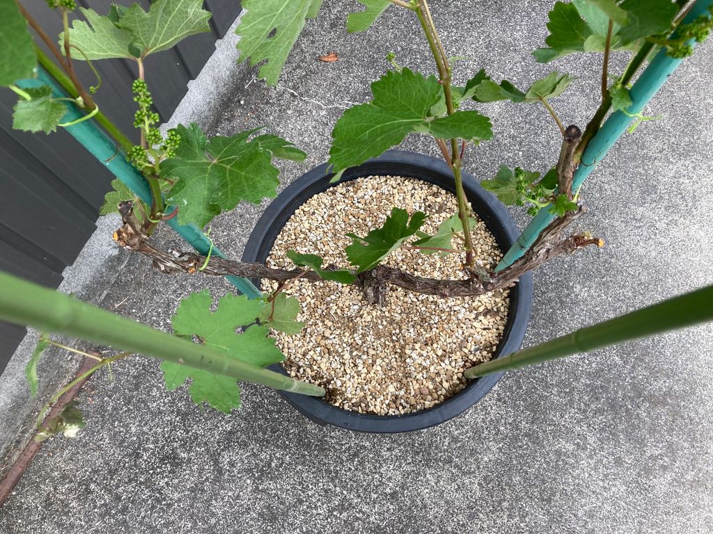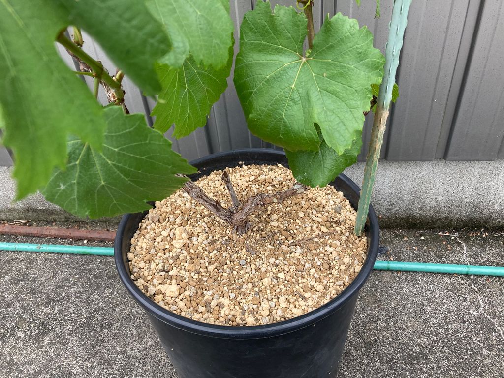 このシャルドネちゃんの鉢植えに支柱を立てていきたいと思います!