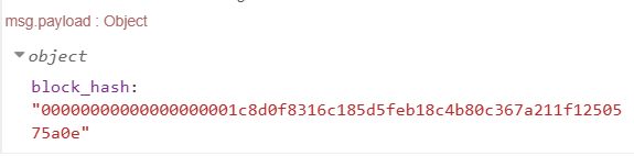 msg.payload.block_hashに文字列としてブロックハッシュが入る。