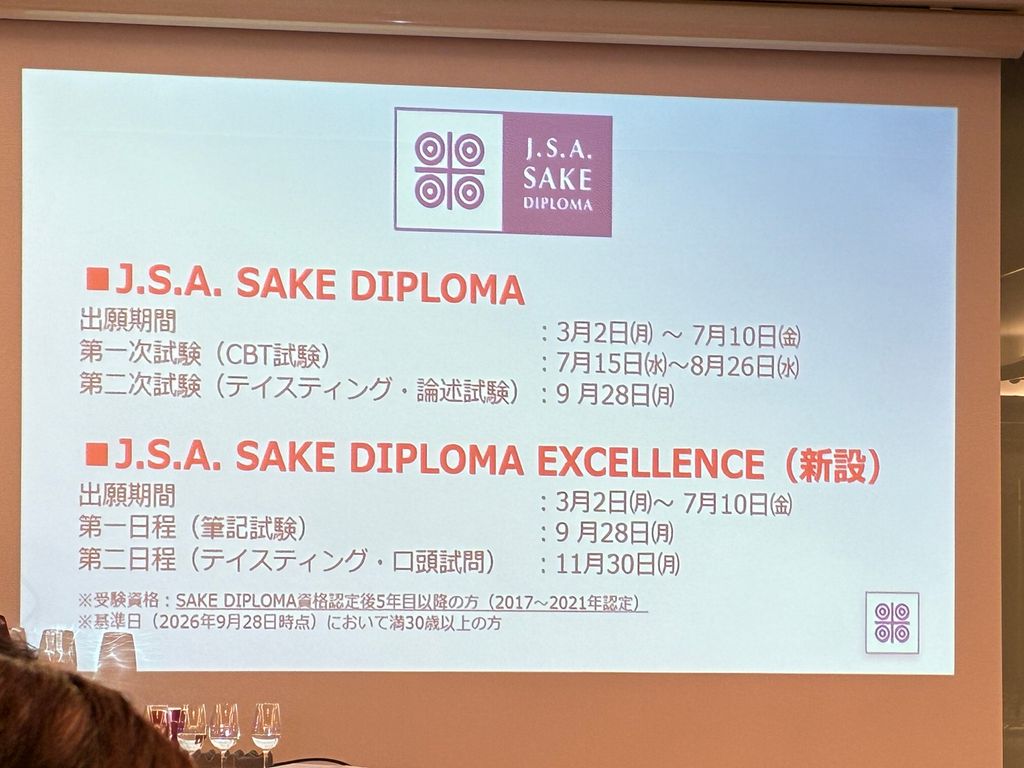 今年度から新たな日本酒の資格「J.S.A. SAKE DIPLOMA EXCELLENCE」が新設されたそうです!「J.S.A. SAKE DIPLOMA」を取得してから5年目以降かつ、満30歳以上の方が対象とのことで、実は私も受験資格はあるようですが・・・ちょっと考えます(笑)。