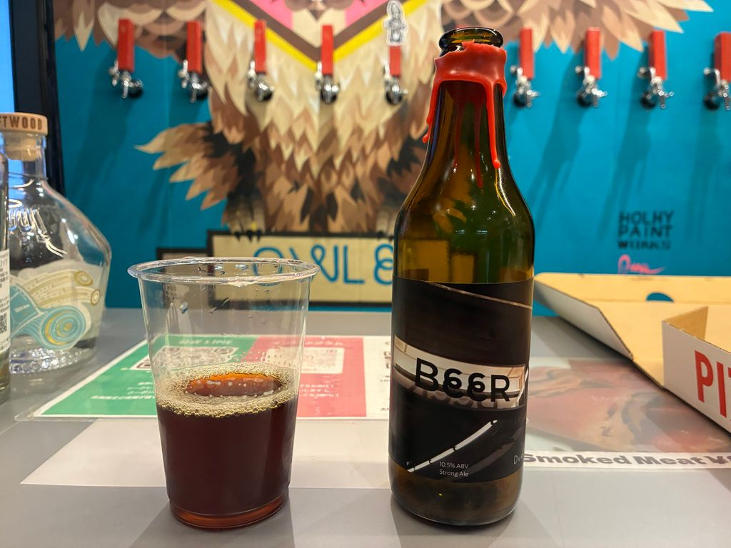 非常に濃い目のブラウンで、先ほどのビールよりも芳醇で甘香ばしい風味に、デーツやレーズンのようなニュアンスもあり、味わいにも甘さと芳醇な風味を感じる非常に奥深い味わいでとても美味しい!しかも、ビールなのにアルコール度数が10.5%でまさにストロングエール!すると、一緒に来ていた友人がおもむろにバッグから・・・
